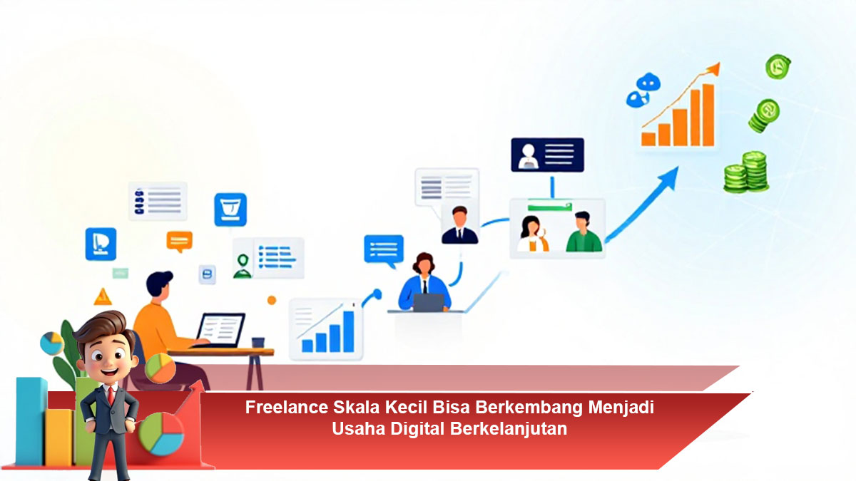 Freelancer skala kecil memiliki peluang besar untuk berkembang menjadi usaha digital berkelanjutan dengan strategi yang tepat. Mulai dari membangun branding, meningkatkan kapasitas layanan, mengelola keuangan, hingga membangun jaringan yang kuat, semua langkah ini mendukung transformasi dari pekerjaan freelance sederhana menjadi bisnis digital profesional. Dengan pendekatan yang terstruktur dan fokus pada kualitas serta inovasi, setiap freelancer berpotensi menciptakan usaha digital yang stabil dan mampu bertahan dalam jangka panjang di era digital yang kompetitif.