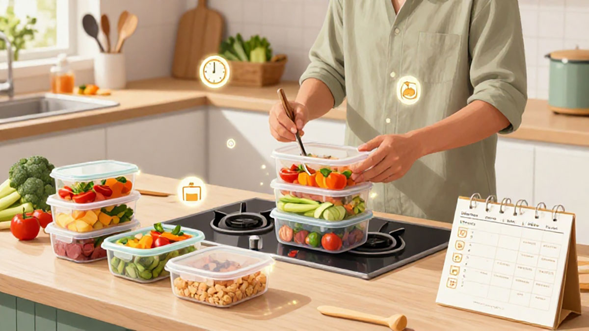 Meal prep membantu mengatur ukuran porsi sehingga lebih mudah mengelola asupan kalori harian. - Mengurangi Stres Harian